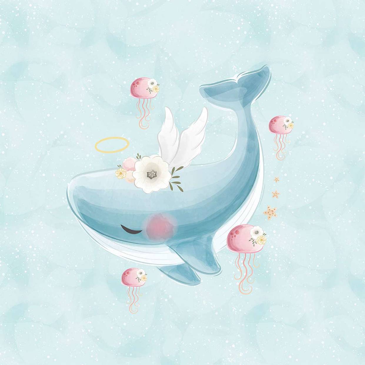 1 zuckersüßes, kuschelig weiches Ganzjahressweat / French Terry Panel mit einem total herzigen Wal – mit niedlichen Blumen, Kugelfische und Seesterne auf wunderschönem mint / hellblau