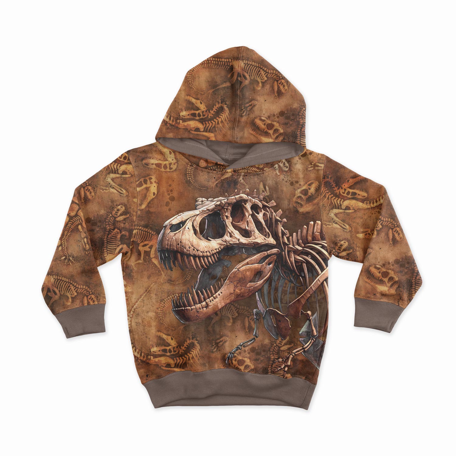 Sweat gemustert0,5m French Terry / Sommersweat mit Dino Skelett auf braun – Dinosaurier Stoffe zum Nähen für Jungen – Kinder Tiere Sweat Stoff – Digitaldruck – Ökotex – Dinoliebe