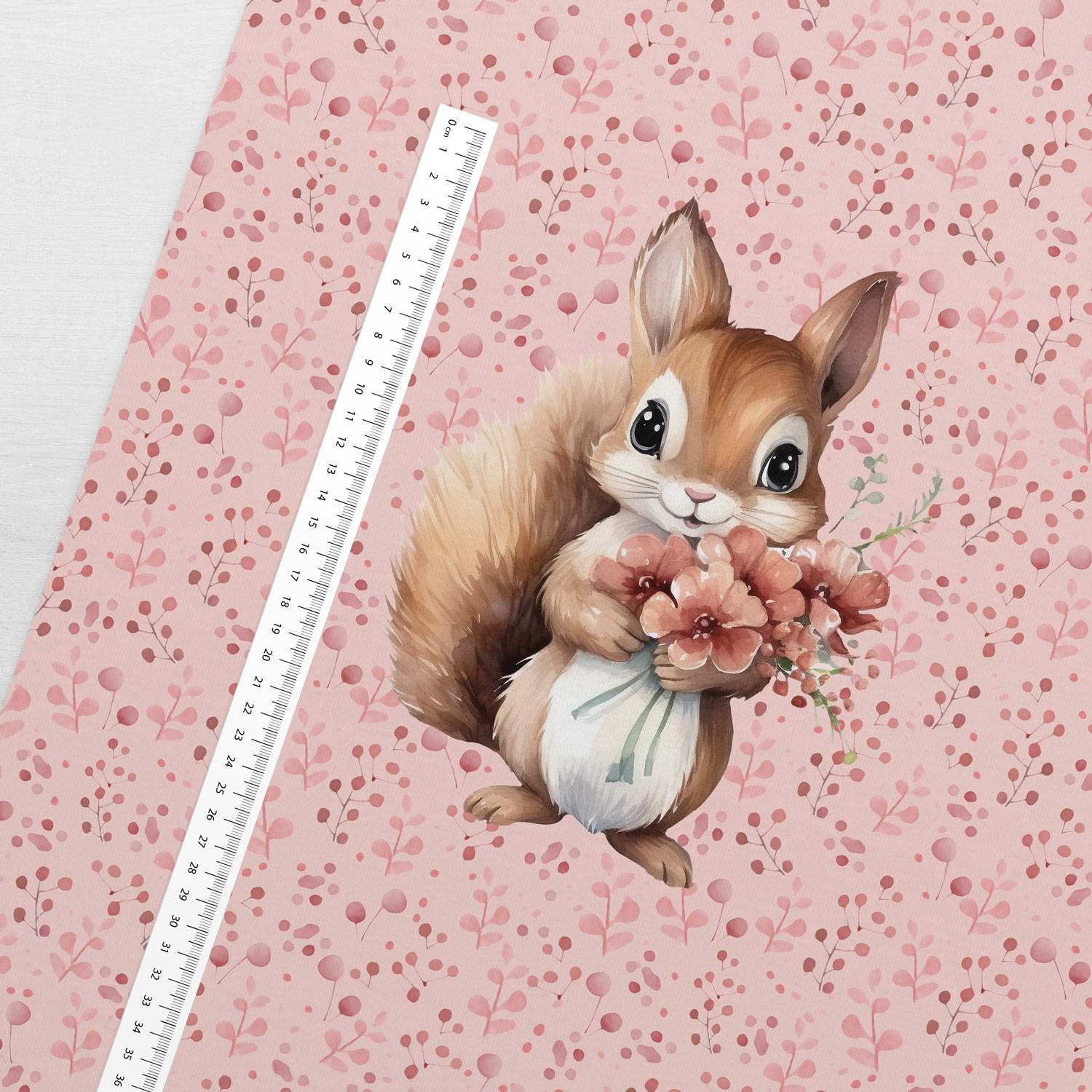 1 French Terry Sommersweat Stoff Panel mit Eichhörnchen und Blumen auf rosa – Mädchen Stoffpanel zum Nähen & Basteln für Baby & Kinder – Digital – Ökotex – Squirrellove